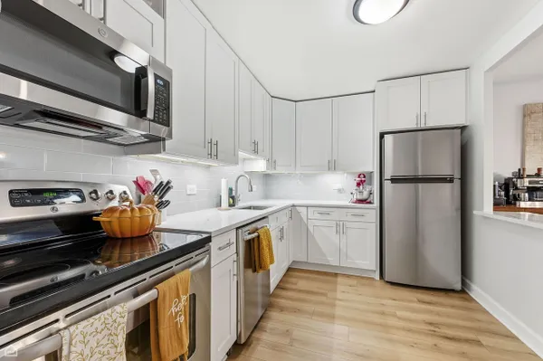 Welcome home to this highly desirable 2bed/2bath Corner Condo in the heart of Old Town, right on Wells Street! From the moment you walk in, you will be captivated by the renovated, modern and cozy feel it gives. Brand New and Gorgeous Kitchen with Stainless Steel Appliances, Quartz Countertops, Dishwasher and an Open Layout, perfect for entertaining. The Massive Living Room has plenty of room for a Dining Area and Work From Home option. Enjoy morning coffee on your Private Balcony with Stunning East Facing Views of Lake Michigan and Old Town. Both bedrooms are spacious and have West Facing Picturesque Views. Primary Bedroom has En-Suite Bathroom. Closets galore throughout entire unit! Americana Towers is a Full Amenity Building including 24 hr Door staff, Fitness Center, Outdoor Pool and Sundeck, Newly Renovated Party Room, Bike Room, Laundry Room, On-Site Maintenance and Dry Cleaners On Site. Attached Garage Parking Available for rent starting at $149. Pet Friendly! Incredible Old Town location right on Wells Street surrounded by delicious dining, boutique shopping, coffee shops and entertainment such as Second City and Zanies Comedy Club. North Ave Beach, Lincoln Park Zoo, Chicago History Museum, Farmer's Market - all just steps away. Also enjoy annual Old Town events such as Wells Street Art Fair, The Air and Water Show along with the Chicago Marathon. Easy public transit options with the Sedgwick Brown Line close by and Red Line at Clark and Division. Don't miss out!